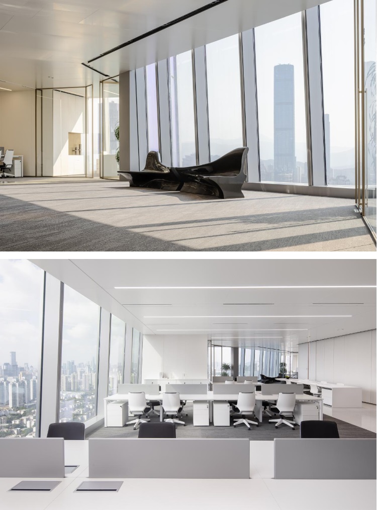 電動開啟窗,VAV中央空調系統(tǒng)提供40m³/小時/人的新風量,滿足LEED&WELL綠建節(jié)能的要求,帶來置身戶外般的辦公體驗感。為總部企業(yè)的聚集與生長提供了生機廣闊的發(fā)展空間。