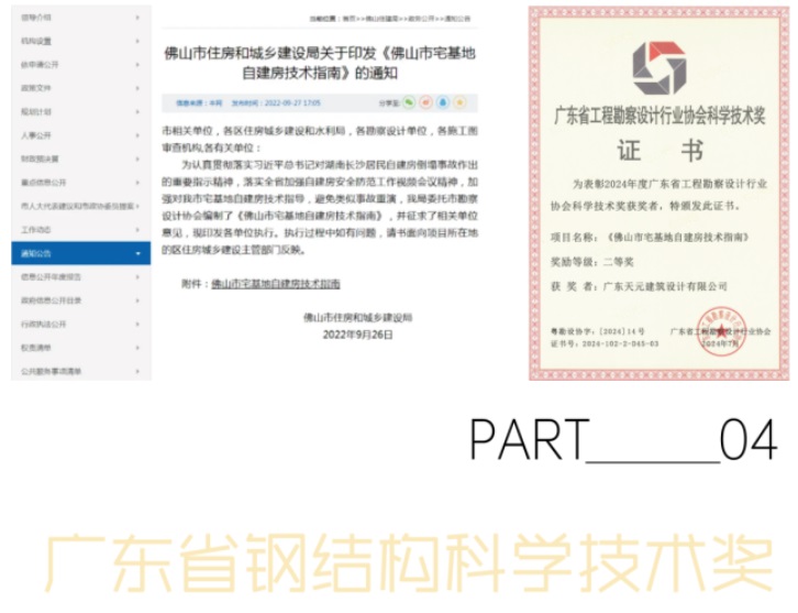 《近零碳建筑數(shù)字設(shè)計(jì)與智慧運(yùn)維創(chuàng)新研究與應(yīng)用》在建筑設(shè)計(jì)與智慧運(yùn)維管理領(lǐng)域展開,經(jīng)專家組評(píng)審達(dá)到國(guó)際先進(jìn)水平,已獲得17項(xiàng)專利授權(quán),期刊發(fā)表論文4篇,榮獲省設(shè)協(xié)科技獎(jiǎng)二等獎(jiǎng)。另外,睿住天元受邀擔(dān)任《佛山市宅基地自建房技術(shù)指南》編輯單位,該指南已正式發(fā)布,填補(bǔ)了佛山市在宅基地自建房管理的空白,為防范自建房建設(shè)中惡性事故的發(fā)生奠定了基礎(chǔ)。