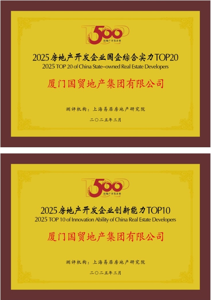 此外,在國企綜合實力、創(chuàng)新能力、產品力等細分領域,國貿地產斬獲了“2025房地產開發(fā)企業(yè)國企綜合實力TOP20(第14位)、2025房地產開發(fā)企業(yè)創(chuàng)新能力TOP10(第2位)“等多項殊榮,開發(fā)的福州國貿天琴灣榮獲“2025十大交付力高端作品”、廈門天樾云頌榮獲“2025典型項目”。