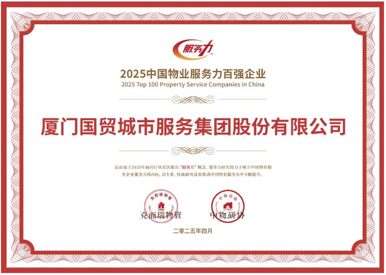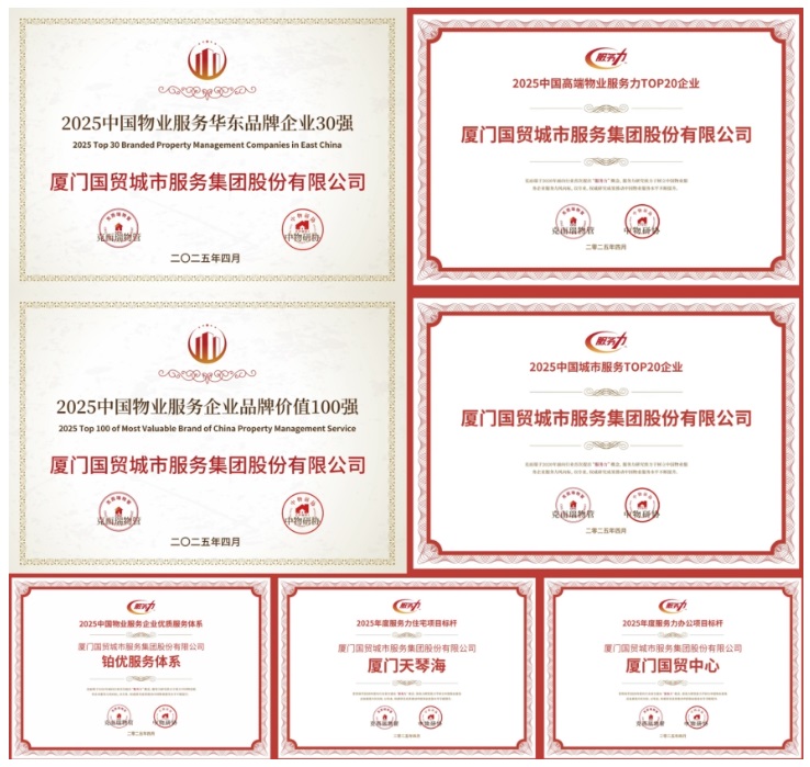 同時,國貿(mào)服務(wù)還榮獲2025中國物業(yè)服務(wù)企業(yè)品牌價值100強(qiáng)、中國高端物業(yè)服務(wù)力TOP20企業(yè)、中國城市服務(wù)力TOP20企業(yè)、中國物業(yè)服務(wù)華東品牌企業(yè)30強(qiáng)。此外,國貿(mào)服務(wù)“鉑優(yōu)服務(wù)體系”榮獲中國物業(yè)服務(wù)企業(yè)優(yōu)質(zhì)服務(wù)體系,在管的廈門天琴海項目、廈門國貿(mào)中心項目榮獲2025年度服務(wù)力標(biāo)桿項目。