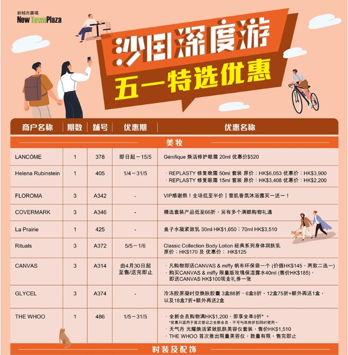 全場近40個品牌商戶為這次黃金周推出獨家優(yōu)惠,尤其Sasa 即日起至5月15日的限時激賞,精選近300款熱門爆品低至25折發(fā)售,讓你買得盡興。品質(zhì)女裝Theory在黃金周期間也推出限定獨家優(yōu)惠,購滿指定金額低至75折;高爾夫?qū)I(yè)服裝品牌 Ashworth即日起至5月5日也有購買新款衣服第二件半價的黃金周限時優(yōu)惠,優(yōu)惠多多,驚喜不斷。