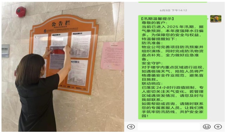 1、智慧防汛:利用業(yè)主群、工作群等平臺(tái)高效傳遞防汛信息,確保能夠第一時(shí)間發(fā)現(xiàn)并排除隱患;