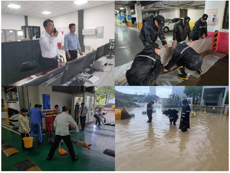監(jiān)控中心發(fā)現(xiàn)車庫(kù)入口積水超過(guò)警戒線,立即啟動(dòng)應(yīng)急預(yù)案;搶險(xiǎn)組用沙袋、擋水板壘住防水墻,物業(yè)人員全力疏通、清掃路面和地庫(kù)積水,保障業(yè)主出行安全。