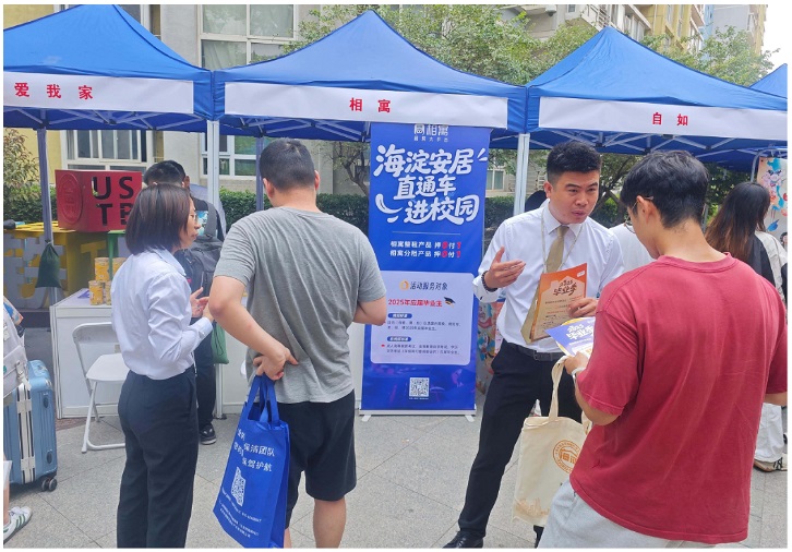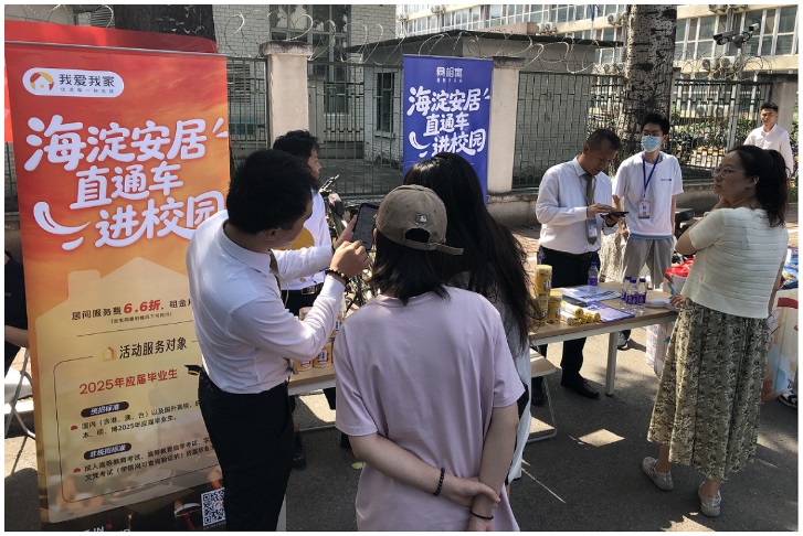 又是一年畢業(yè)季,為切實(shí)幫助畢業(yè)生安居,北京市組織了2025年度“畢業(yè)季租房服務(wù)進(jìn)校園”活動。海淀區(qū)作為高校聚集地,在市活動號召及區(qū)房管局指導(dǎo)下,推出了“海淀安居直通車”專屬優(yōu)惠活動。作為海淀區(qū)房地產(chǎn)經(jīng)紀(jì)行業(yè)協(xié)會會長單位,我愛我家牽頭組織區(qū)內(nèi)房地產(chǎn)經(jīng)紀(jì)機(jī)構(gòu)、住房租賃企業(yè)、保租房項(xiàng)目企業(yè)等,走進(jìn)中國人民大學(xué)、中國農(nóng)業(yè)大學(xué)、北京航空航天大學(xué)等近10所高校和園區(qū),宣講優(yōu)惠政策和提供優(yōu)質(zhì)服務(wù),助力畢業(yè)生安居。