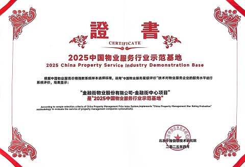 近日,北京金融街第一太平戴維斯物業(yè)管理有限公司在管項目金融街中心項目榮獲了由業(yè)內(nèi)權(quán)威機(jī)構(gòu)——北京中指信息技術(shù)研究院頒發(fā)的“2025物業(yè)服務(wù)示范基地”榮譽稱號。