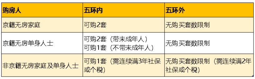 表1:調(diào)整后北京市不同家庭在京的購(gòu)房政策