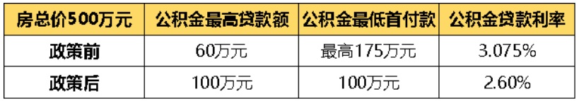 綜合以上,以購(gòu)買住房總價(jià)500萬(wàn)元為例,公積金貸款100萬(wàn)元、貸款年限30年為例,由二套房調(diào)整為首套房后,首付款最高減少75萬(wàn)元,公積金貸款月供最高減少253元。