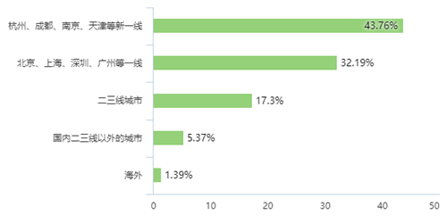 受調(diào)查工作地所在城市,以杭州、成都、南京、天津等新一線城市和北京、上海、深圳、廣州等一線城市為主。