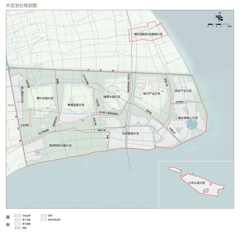 臨港新片區(qū)規(guī)劃范圍包括上海大治河以南、金匯港以東以及小洋山島、浦東國(guó)際機(jī)場(chǎng)南側(cè)區(qū)域。全域面積共873平方公里,其中,主體部分為大治河以南、金匯港以東地區(qū),面積約819平方公里,小洋山島區(qū)域?yàn)樾⊙笊綅u全域,面積約26平方公里,浦東國(guó)際機(jī)場(chǎng)南側(cè)區(qū)域?yàn)闁|引河以西、S32申嘉湖高速-緯十一路-圍場(chǎng)河以南、G1503上海繞城高速以東、下鹽路-上飛路以北區(qū)域,面積約28平方公里。