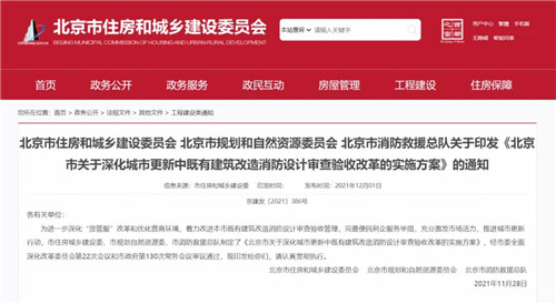 一直以來(lái),消防驗(yàn)收都是各地城市更新的一大難題。為了進(jìn)一步深化“放管服”改革和優(yōu)化營(yíng)商環(huán)境,12月1日,北京市住建委等三部門(mén)發(fā)布了《北京市關(guān)于深化城市更新中既有建筑改造消防設(shè)計(jì)審查驗(yàn)收改革的實(shí)施方案》(以下簡(jiǎn)稱(chēng)《實(shí)施方案》)。