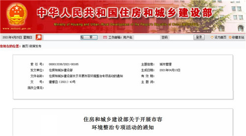 住房和城鄉(xiāng)建設(shè)部關(guān)于開展市容環(huán)境整治專項活動的通知