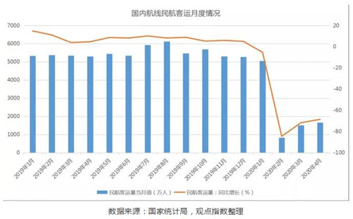 從民航數(shù)據(jù)上看,4月民航客運(yùn)量1671.5萬人,同比下跌68.5%;1-4月累計(jì)民航客運(yùn)量9081萬人,同比下跌57.5%。單月來看,民航數(shù)據(jù)正快速恢復(fù),但離正常狀態(tài)仍有相當(dāng)差距。