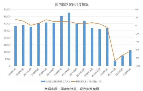 目前國內(nèi)旅游業(yè)僅有限度開放,4月各省份旅行社業(yè)務(wù)因應(yīng)當(dāng)?shù)厍闆r開始部分恢復(fù),省內(nèi)、郊區(qū)周邊游成為最快復(fù)蘇的部分,不過出行方式集中在自駕出行,鐵路、民航的運(yùn)輸數(shù)據(jù)依然維持低點(diǎn)。