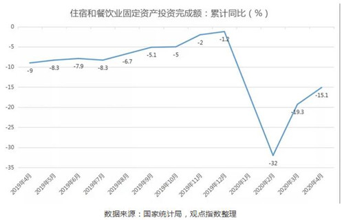 從行業(yè)內(nèi)固定資產(chǎn)投資數(shù)據(jù)看,4月份住宿和餐飲業(yè)固定資產(chǎn)投資完成額累計(jì)同比下滑15.1%,降幅仍較為明顯,因住宿和餐飲業(yè)受到疫情正面沖擊,目前市場(chǎng)信心仍未恢復(fù),但數(shù)據(jù)較3月份已經(jīng)有了明顯反彈。