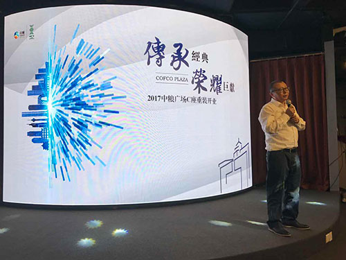 首先代表全聯(lián)房地產(chǎn)商會寫字樓分會熱烈祝賀"傳承經(jīng)典,榮耀巨獻(xiàn)"中糧廣場C座重裝開放日舉辦。