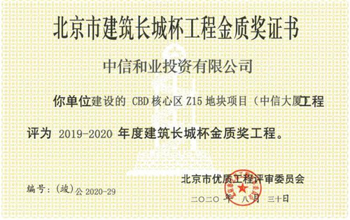 近日,由中信和業(yè)開發(fā)建設(shè)的中信大廈榮獲2019-2020年度北京市建筑長城杯(竣工)工程金質(zhì)獎(jiǎng),這是該項(xiàng)目繼2018年北京市建筑長城杯(結(jié)構(gòu))工程金質(zhì)獎(jiǎng)、2019年中國鋼結(jié)構(gòu)金獎(jiǎng)杰出工程大獎(jiǎng)后在工程質(zhì)量方面獲得的又一殊榮,展示了公司在項(xiàng)目開發(fā)建設(shè)方面雄厚的技術(shù)與管理實(shí)力。