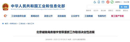 近日,北京市通信管理局、北京市住房和城鄉(xiāng)建設委員會、北京市規(guī)劃和自然資源委員會、北京市市場監(jiān)督管理局、北京市經(jīng)濟和信息化局及北京市公安局聯(lián)合印發(fā)了《北京市商務樓宇寬帶接入市場聯(lián)合整治行動工作方案》(下稱“工作方案”)。各部門將依據(jù)工作方案要求深入開展商務樓宇寬帶接入市場整治工作,對于違規(guī)行為將依法嚴肅處理,并通過媒體集中公開曝光,納入企業(yè)誠信記錄。