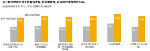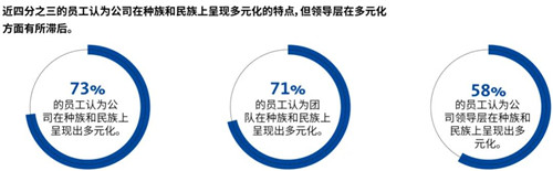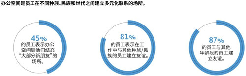 大多數(shù)員工認(rèn)為他們所在的團(tuán)隊(duì)和公司呈現(xiàn)多元化的特點(diǎn)。但只有不到一半的員工認(rèn)為公司的領(lǐng)導(dǎo)層也實(shí)現(xiàn)了多元化。雖然員工們可能認(rèn)為自己的公司包容了不同種族和少數(shù)民族,但在我們的調(diào)查中,領(lǐng)導(dǎo)層的白人占比較高。重要的是,辦公空間是人們結(jié)交不同種族和民族朋友的主要場所。種族和民族多樣性不只是有利于開展人際關(guān)系。在多元化組織中工作的員工更有自主權(quán),工作滿意度更高,并且認(rèn)為其所在的公司更符合自己的價(jià)值觀。