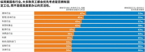 大多數(shù)員工在未來會(huì)更青睞混合辦公模式,但是因?yàn)樾袠I(yè)不同,工作模式也有所差異。