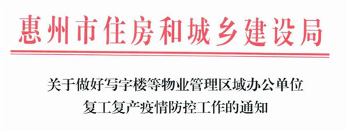 2月9日,惠州市住建局發(fā)出《關(guān)于做好寫字樓等物業(yè)管理區(qū)域辦公單位復(fù)工復(fù)產(chǎn)疫情防控工作的通知》(下稱《通知》),要求各縣(區(qū))住建局、房管局(中心),市物業(yè)管理協(xié)會,各物業(yè)服務(wù)企業(yè),切實做好寫字樓區(qū)域辦公單位復(fù)工復(fù)產(chǎn)疫情防控工作,堅決防止疫情擴散蔓延。