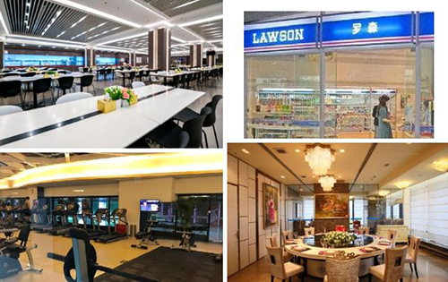 包括健身房、商務(wù)餐飲、員工餐廳、咖啡廳、便利店等在內(nèi)的配套服務(wù)設(shè)施,為商務(wù)人士提供多功能、一站式的便利服務(wù)。