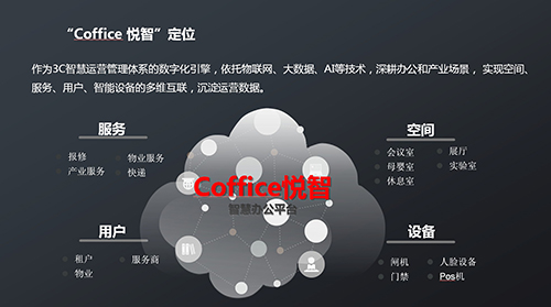 而COFFICE平臺(tái)作為3C運(yùn)營服務(wù)體系的核心,依托物聯(lián)網(wǎng)、大數(shù)據(jù)、AI等技術(shù),深耕辦公與產(chǎn)業(yè)場景,實(shí)現(xiàn)空間、服務(wù)、用戶、智能設(shè)備多維互聯(lián)的數(shù)字化引擎,沉淀運(yùn)營數(shù)據(jù)。
