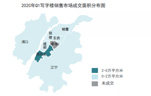 2020年第一季度商辦用地共成交6幅地塊,均以底價成交,總面積約36萬平方米,同比上漲531%。土地成交主要集中在江寧、棲霞、江北新區(qū)板塊,新興板塊土地出讓市場逐步活躍,核心區(qū)域出讓步伐放緩。其中棲霞區(qū)濱江商務區(qū)一期地塊出讓面積較大,包含住宅和商辦用地,而秦淮區(qū)三山街站地塊樓板價最高,達到每平方米14,076元。