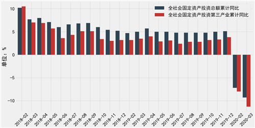 圖:2018年~2020年一季度上海全社會(huì)固定資產(chǎn)投資情況(單位:%)
