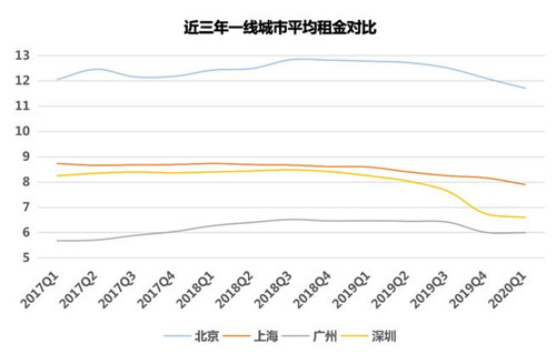 自2018年四季度起,在經(jīng)濟(jì)增速下降和貿(mào)易爭(zhēng)端影響下,一線城市整體市場(chǎng)一直處于下行態(tài)勢(shì),平均出租率和租金均出現(xiàn)連續(xù)6個(gè)季度下跌,新冠疫情的爆發(fā)進(jìn)一步加重了這一下跌態(tài)勢(shì)。