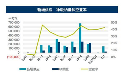 戴德梁行數(shù)據(jù)顯示,2020年上半年,世茂環(huán)球金融中心竣工交付,為長(zhǎng)沙甲級(jí)寫字樓市場(chǎng)帶來約14.7萬平方米的新增供應(yīng),將長(zhǎng)沙市甲級(jí)寫字樓市場(chǎng)整體存量推升至213.8萬平方米。新項(xiàng)目的入市疊加疫情的影響共同推動(dòng)長(zhǎng)沙市整體空置率環(huán)比上升2.9個(gè)百分點(diǎn)至42.7%。