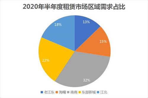 記者從報(bào)告中看到,今年上半年,南部商務(wù)區(qū)的需求和成交量占比最大。從需求來(lái)看,南部商務(wù)區(qū)需求量占比達(dá)32%;東部新城次之,占比為22%;從成交量來(lái)看,南部商務(wù)區(qū)成交量占比達(dá)31%;東部新城次之,占比24%。