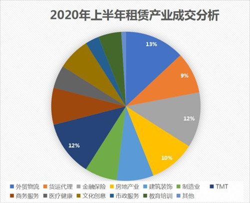 該報(bào)告還指出,在租賃面積方面,100平方米到200平方米成交量最大,占比35%;100平方米以下次之,占比28%;500平方米以上成交量同比下跌10%。從市場(chǎng)調(diào)研情況來(lái)看,傳統(tǒng)制造業(yè)、對(duì)外貿(mào)易、旅游等行業(yè)的寫(xiě)字樓租賃需求疲軟。電信、媒體和科技、在線(xiàn)服務(wù)(辦公、教育、零售)、健康醫(yī)療、跨境電商類(lèi)、金融類(lèi)的銀行及保險(xiǎn)等行業(yè)業(yè)務(wù)規(guī)模擴(kuò)大,租賃需求保持旺盛,甚至有所增長(zhǎng)。