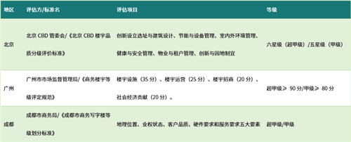 2018年10月,北京朝陽(yáng)區(qū)發(fā)布《北京CBD樓宇品質(zhì)分級(jí)評(píng)價(jià)標(biāo)準(zhǔn)》,評(píng)選出8個(gè)六星級(jí)寫(xiě)字樓,同時(shí)賦予超甲級(jí)寫(xiě)字樓的稱(chēng)號(hào),這也是一線城市首次評(píng)定超甲級(jí)寫(xiě)字樓,不過(guò)仍限制在區(qū)級(jí)范圍。