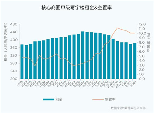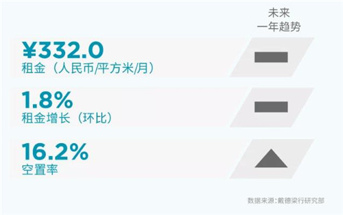 受活躍的市場需求影響,全市空置率環(huán)比下降1.3個百分點至16.2%。整體市場租金企穩(wěn)回升,在連續(xù)十個季度持續(xù)下跌后首次迎來小幅上揚,環(huán)比上升1.8%至每月每平方米人民幣332.0元。