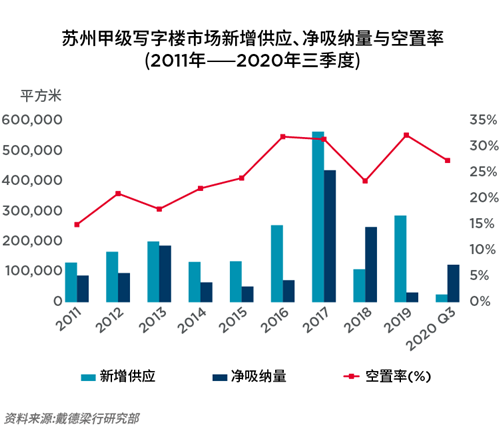 2020年,蘇州市政府提出了10條扶持中小企業(yè)的政策,幫助企業(yè)渡過難關(guān)。短期內(nèi),蘇州寫字樓市場將保持平穩(wěn)。長期來看,現(xiàn)有寫字樓項(xiàng)目紛紛嘗試和探索提高租戶服務(wù)質(zhì)量的方法,以期增加其市場競爭力。這些辦公環(huán)境的變革將支持周邊地區(qū)的商業(yè)復(fù)蘇,也加深了業(yè)主與入駐企業(yè)之間的關(guān)系。