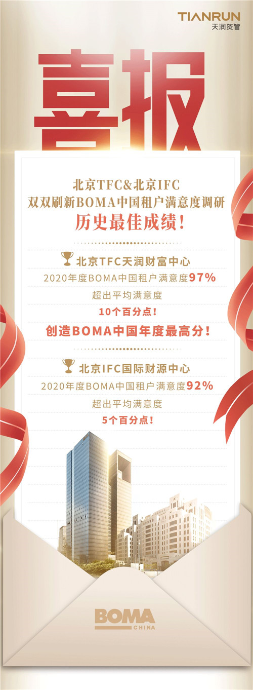 北京TFC和北京IFC雙雙刷新BOMA中國租戶滿意度調(diào)研歷史最佳成績!