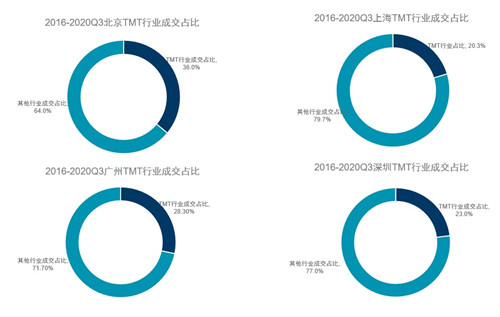 房訊網訊 據(jù)戴德梁行市場報告指出,TMT行業(yè)過去五年在寫字樓租賃市場扮演了重要角色。數(shù)據(jù)顯示,從2016年至2020年,TMT行業(yè)在北上廣深四個一線城市寫字樓租賃占比分別達到36%、20.3%、28.3%及23%。