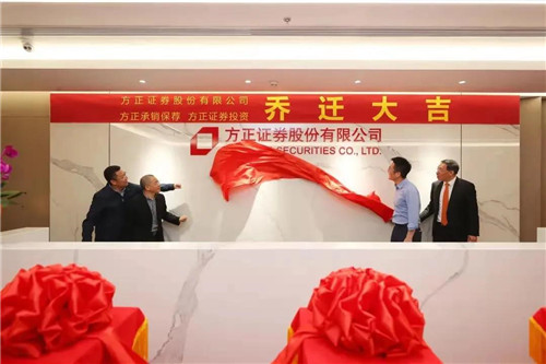 方正集團(tuán)重整管理人代表張新明先生,參與方正集團(tuán)重整的投資人代表聶志強(qiáng)先生,方正集團(tuán)董事長、黨委書記生玉海先生,方正集團(tuán)總裁兼首席執(zhí)行官謝克海先生,方正集團(tuán)重整工作組證券組代表司維女士,以及方正證券高管、各子公司高管和方正證券部門負(fù)責(zé)人和員工代表出席了喬遷慶典。