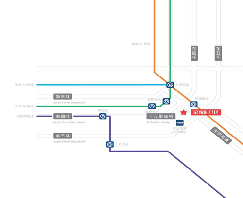 金輝時(shí)八區(qū)項(xiàng)目地處北京東南四環(huán)核心位置,北望國(guó)貿(mào), 南鄰亦莊,緊鄰東南四環(huán)及京滬高速.南四環(huán)路、京滬高速公路、大羊坊路,三條城市主干路途徑項(xiàng)目,通達(dá)全城.地鐵10號(hào)線和亦莊線位于項(xiàng)目西側(cè),未來(lái)規(guī)劃城市輕軌17號(hào)線位于項(xiàng)目東側(cè),北起昌平區(qū)未來(lái)科技城北站,南至亦莊站前區(qū)南站,項(xiàng)目建成后,地鐵5號(hào)線、10號(hào)線、17號(hào)線貫穿聯(lián)通整個(gè)地塊