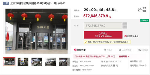 房訊網(wǎng)訊 8月10日,據(jù)阿里拍賣顯示,北京市第三中級人民法院將于9月9日公開拍賣北京市朝陽區(qū)姚家園路105號3號樓1-14層不動產(chǎn),評估價約8.18億元,起拍價約5.73億元。