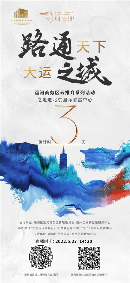 相約5月27日,相約“路通天下 大運之城”直播間,足不出戶領略城市副中心運河商務區(qū)的發(fā)展騰飛之路,尋找能夠助力企業(yè)發(fā)展的未來商務之地。