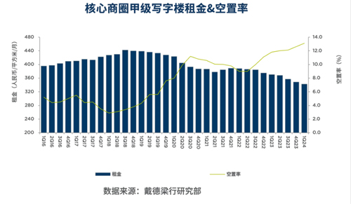 1 季度甲級(jí)寫(xiě)字樓租金和空置率走勢(shì)