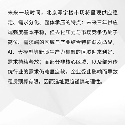 第一太平戴維斯(Savills)發(fā)布2025第三季度中國(guó)辦公樓市場(chǎng)回顧及展望。中國(guó)寫字樓市場(chǎng)仍映射出宏觀經(jīng)濟(jì)的兩速格局:新經(jīng)濟(jì)產(chǎn)業(yè)迅速擴(kuò)張,傳統(tǒng)行業(yè)持續(xù)承壓?萍寂c制造企業(yè)偏向自用或遷入產(chǎn)業(yè)園區(qū),傳統(tǒng)企業(yè)則縮減面積、尋求更高性價(jià)比。