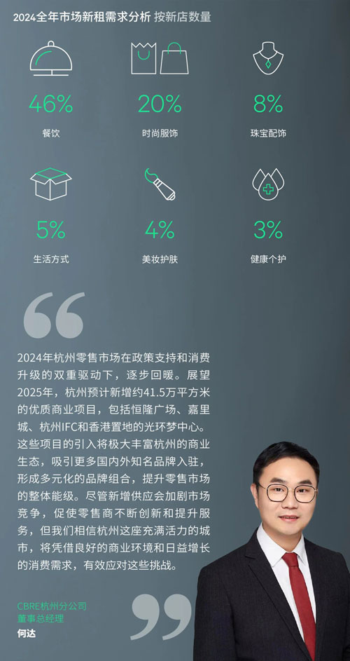 杭州大廈購(gòu)物城作為高端商業(yè)的代表,完成了全面的品牌改造,包括中央商城停車庫(kù)形象提升和AB座外環(huán)境改造,采用“盒子+街區(qū)”的商業(yè)模式,增強(qiáng)時(shí)尚感與商業(yè)氛圍。同時(shí),杭州解百在湖濱商圈進(jìn)行閉店裝修,A座復(fù)刻七八十年代主題,吸引懷舊消費(fèi);B座則聚焦青年群體,強(qiáng)調(diào)個(gè)性化與體驗(yàn)化,升級(jí)為24小時(shí)主題型網(wǎng)紅街區(qū)。此外,杭州龍湖西溪天街在2024年進(jìn)行品牌調(diào)整,新開17家店鋪,其中餐飲占42%,零售占41%,包括喜茶和樂樂茶等知名品牌。這些改造與調(diào)整不僅豐富了消費(fèi)者選擇,也為杭州零售市場(chǎng)注入新活力,展現(xiàn)持續(xù)增長(zhǎng)潛力。