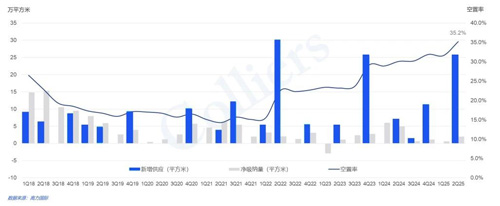 二季度,隨著部分新項(xiàng)目進(jìn)入市場(chǎng),全市空置率環(huán)比上升約3.6個(gè)百分點(diǎn),至35.2%,同比上漲5.1%,市場(chǎng)空置壓力維持高位;隨著下半年新增供應(yīng)項(xiàng)目陸續(xù)入市,市場(chǎng)空置率將保持高企態(tài)勢(shì)。