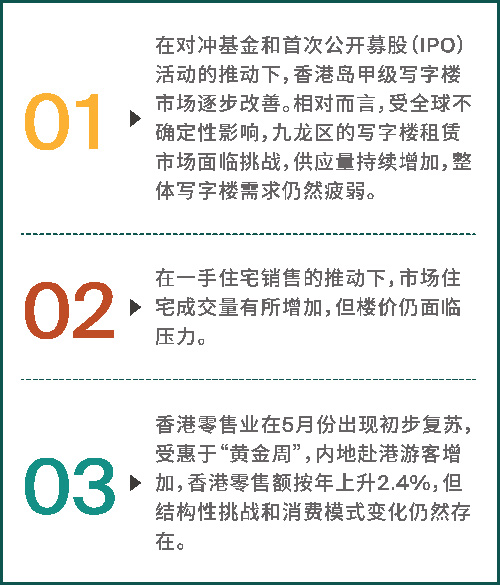 香港零售業(yè)在5月份出現(xiàn)初步復蘇,受惠于“黃金周”,內地赴港游客增加,香港零售額按年上升2.4%,然而,1至5月份的累計零售銷售額較去年下跌4%,反映出持續(xù)的結構性挑戰(zhàn)。