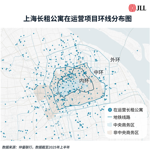 上海核心城區(qū)現(xiàn)存大量老舊乙級(jí)辦公樓,面臨整體空置率較高、資產(chǎn)流動(dòng)性偏弱的壓力;與此同時(shí),內(nèi)環(huán)內(nèi)的長(zhǎng)租公寓存量?jī)H占全市的6%,租賃住房供應(yīng)存在明顯缺口。這種空間資源錯(cuò)配,加劇了核心城區(qū)“職住不平衡”的結(jié)構(gòu)性挑戰(zhàn),同時(shí)也為高品質(zhì)租賃住房的發(fā)展提供了潛在機(jī)遇。
