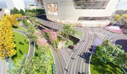 項(xiàng)目首創(chuàng)的"盒子+"建筑形態(tài),則在傳統(tǒng)盒子商業(yè)基礎(chǔ)上,增加多層次戶外平臺與寬闊的綠地廣場,使空間介于密閉商業(yè)盒子與開放式街區(qū)形態(tài)之間。