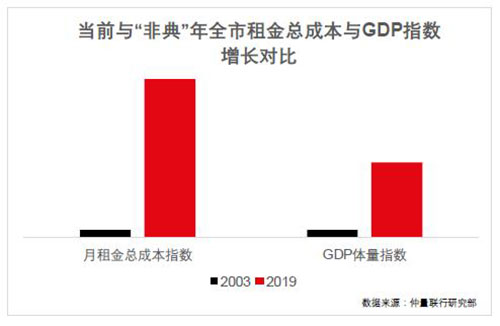 多組數(shù)據(jù)均表明非典時(shí)期,北京甲級(jí)辦公樓市場(chǎng)僅發(fā)生短期波動(dòng),在疫情結(jié)束后回歸快速發(fā)展軌道,為市場(chǎng)在應(yīng)對(duì)此次疫情時(shí)提供信心。但是值得注意的是,當(dāng)前北京甲級(jí)辦公樓所面臨的整體環(huán)境和市場(chǎng)規(guī)模與2003年大相徑庭,疫情所帶來(lái)的影響不能簡(jiǎn)單類比2003年的情況。比如,甲級(jí)辦公樓市場(chǎng)整體體量在16年間已增長(zhǎng)近900%,而租金水平增長(zhǎng)也已超過(guò)160%。2003年,北京全市甲級(jí)辦公樓租戶繳納月租金總額為1.1億元,而此刻北京全市需承擔(dān)超過(guò)21.6億元的甲級(jí)辦公樓月租金成本,租金成本翻了21倍,而同期GDP總值僅增長(zhǎng)約10倍。與此同時(shí),北京也剛剛經(jīng)歷了2019年經(jīng)濟(jì)下行壓力所帶來(lái)的市場(chǎng)波動(dòng),多個(gè)市場(chǎng)指標(biāo)處于歷史新低。相較于2003年,我們所處的市場(chǎng)雖然擁有更龐大的體量、更強(qiáng)的常規(guī)風(fēng)險(xiǎn)抵御能力,但面臨疫情等突發(fā)意外事件時(shí),也相對(duì)更加脆弱,容錯(cuò)空間更小。市場(chǎng)各方參與者不能因非典年的市場(chǎng)恢復(fù)速度而盲目樂觀,但也應(yīng)保持基本信心,主動(dòng)提前采取措施、調(diào)整應(yīng)對(duì)策略,以更合理的方式分配疫情成本,保證整體市場(chǎng)的健康水平。