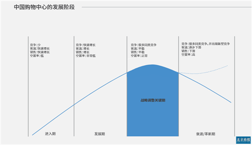 購(gòu)物中心處在以存量為主的戰(zhàn)略調(diào)整關(guān)鍵期,行業(yè)分化即將到來(lái)。據(jù)睿意德中國(guó)商業(yè)地產(chǎn)研究中心的數(shù)據(jù)顯示,2018年中國(guó)購(gòu)物中心新增面積僅為整體存量面積的十分之一。按照國(guó)際經(jīng)驗(yàn),當(dāng)購(gòu)物中心進(jìn)入存量時(shí)代之后,行業(yè)整體會(huì)步入成熟期,客流和銷售的高速增長(zhǎng)盛況不再,增長(zhǎng)紅利的消失導(dǎo)致市場(chǎng)容錯(cuò)度降低,同質(zhì)化競(jìng)爭(zhēng)加劇,弱勢(shì)項(xiàng)目開始出現(xiàn)大量空置現(xiàn)象。行業(yè)的成熟期是行業(yè)內(nèi)企業(yè)進(jìn)行戰(zhàn)略調(diào)整的關(guān)鍵階段,衰退和變革重振的行業(yè)分化即將到來(lái),如果按照傳統(tǒng)的經(jīng)營(yíng)模式,企業(yè)很可能會(huì)進(jìn)入到衰退期,只有進(jìn)行全面的變革,才有可能實(shí)現(xiàn)行業(yè)的重振。